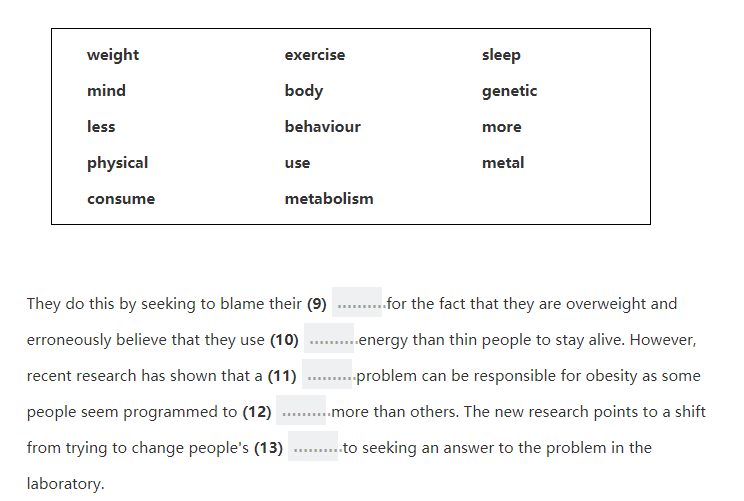 A.Obesity is a huge problem in many Western countries and one which now attracts considerable medical interest as researchers take up the challenge to find a 'cure' for the common condition of being seriously overweight. However, rather than take responsibility for their weight, obese people have often sought solace in the excuse that they have a slow metabolism, a genetic hiccup which sentences more than half the Australian population (63% of men and 47% of women) to a life of battling with their weight. The argument goes like this: it doesn't matter how little they eat, they gain weight because their bodies break down food and turn it into energy more slowly than those with a so-called normal metabolic rate.