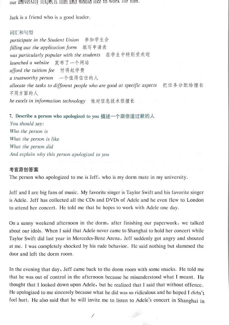 7. Describe a person who apologized to you描述一个跟你道过歉的人