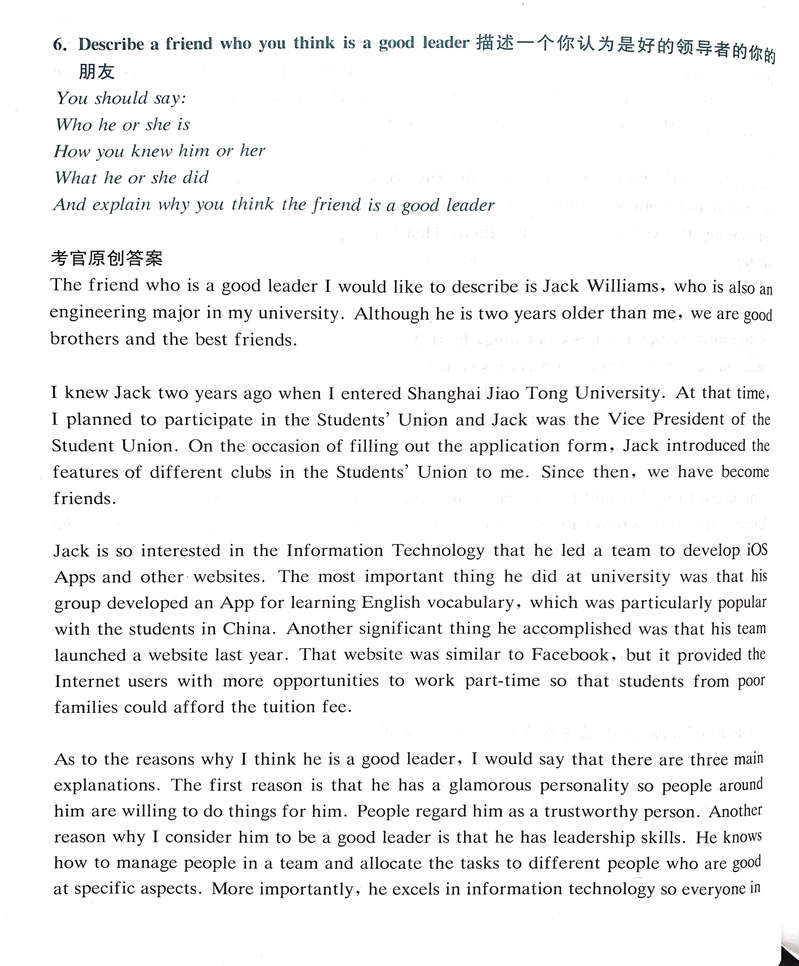 6. Describe a friend who you think is a good leader描述一个朋友你认为是好的领导者