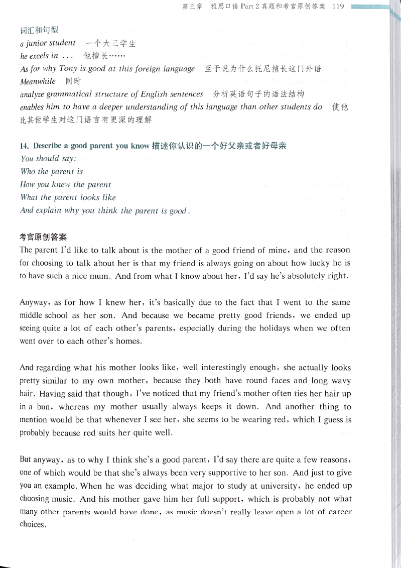 14. Describe a good parent you know描述一个你所知道的好的家长(录音中序号为17)