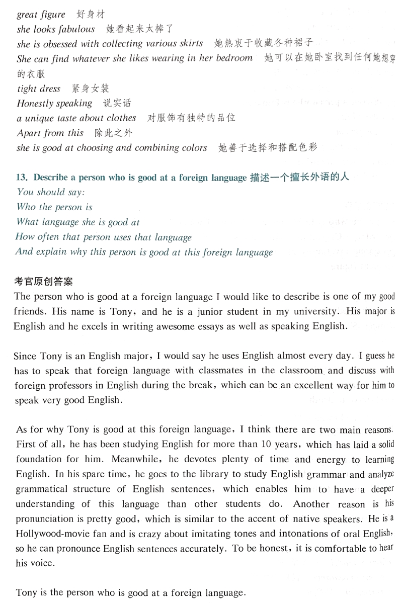 13. Describe a person who is good at a foreign language描述一个擅长外语的人