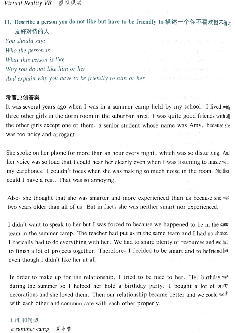 11. Describe a person you do not like but have to be friendly to描述一个你不喜欢但不得不友好对待的人
