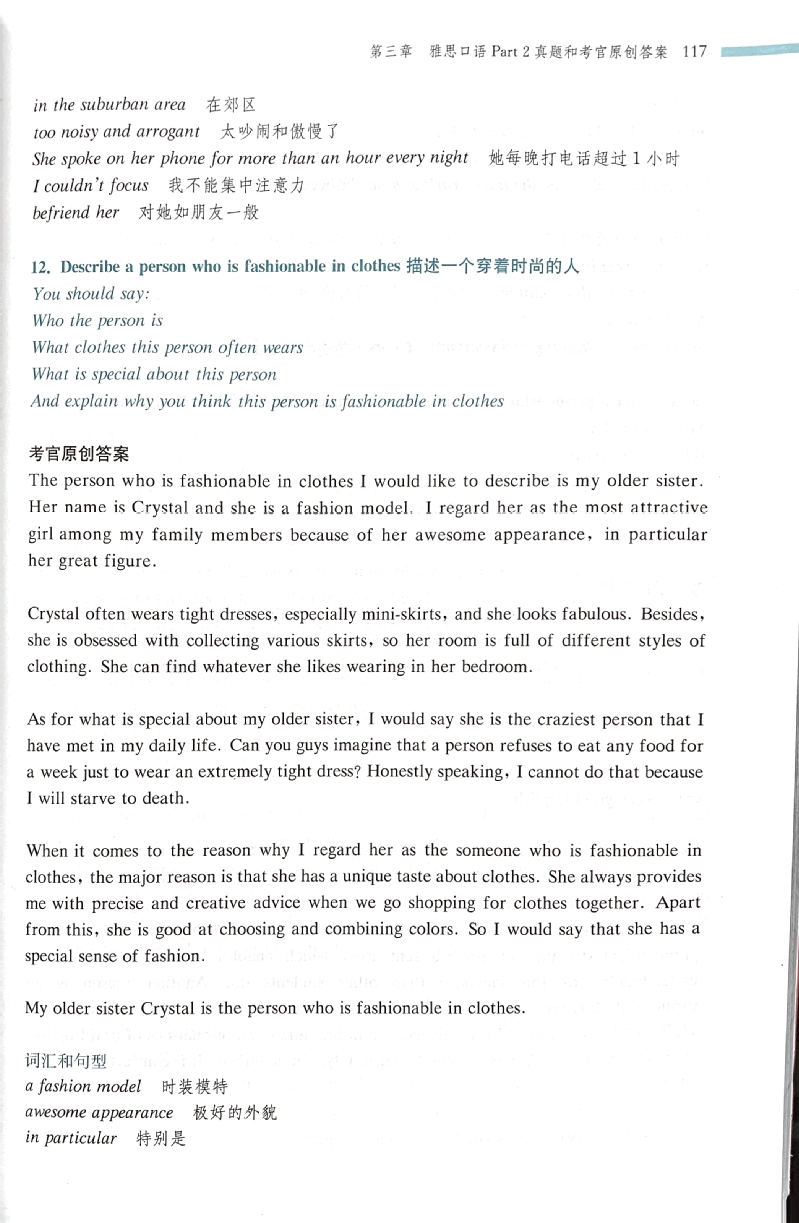 12. Describe a person who is fashionable in clothes描述一个穿着时尚的人