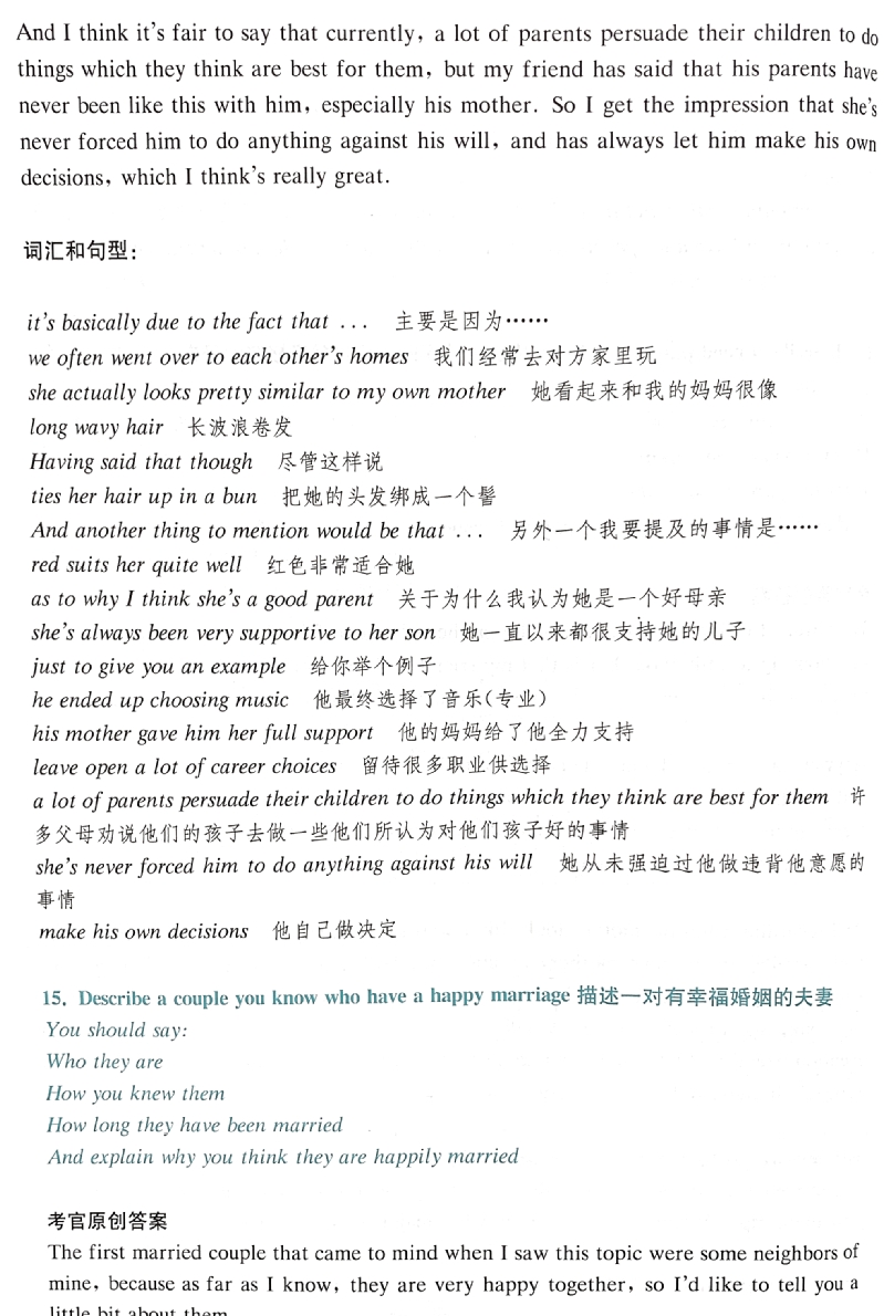 15. Describe a couple you know who have a happy marriage描述一对幸福的夫妻(录音中序号为18)