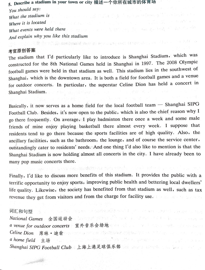 Describe a stadium in your town or city描述一个你所在城市的体育场。