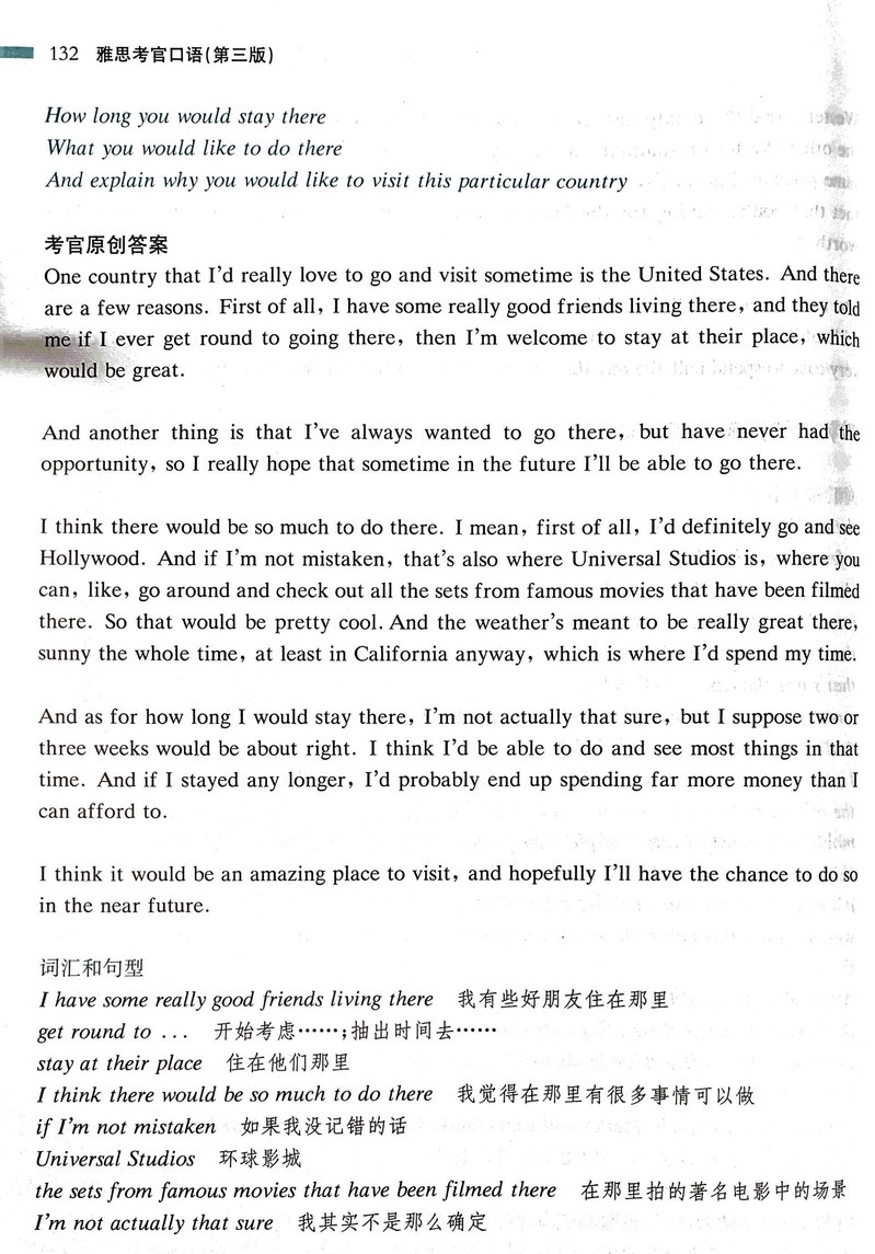 Describe a country you would like to visit for the first time描述你想要去一次的国家。