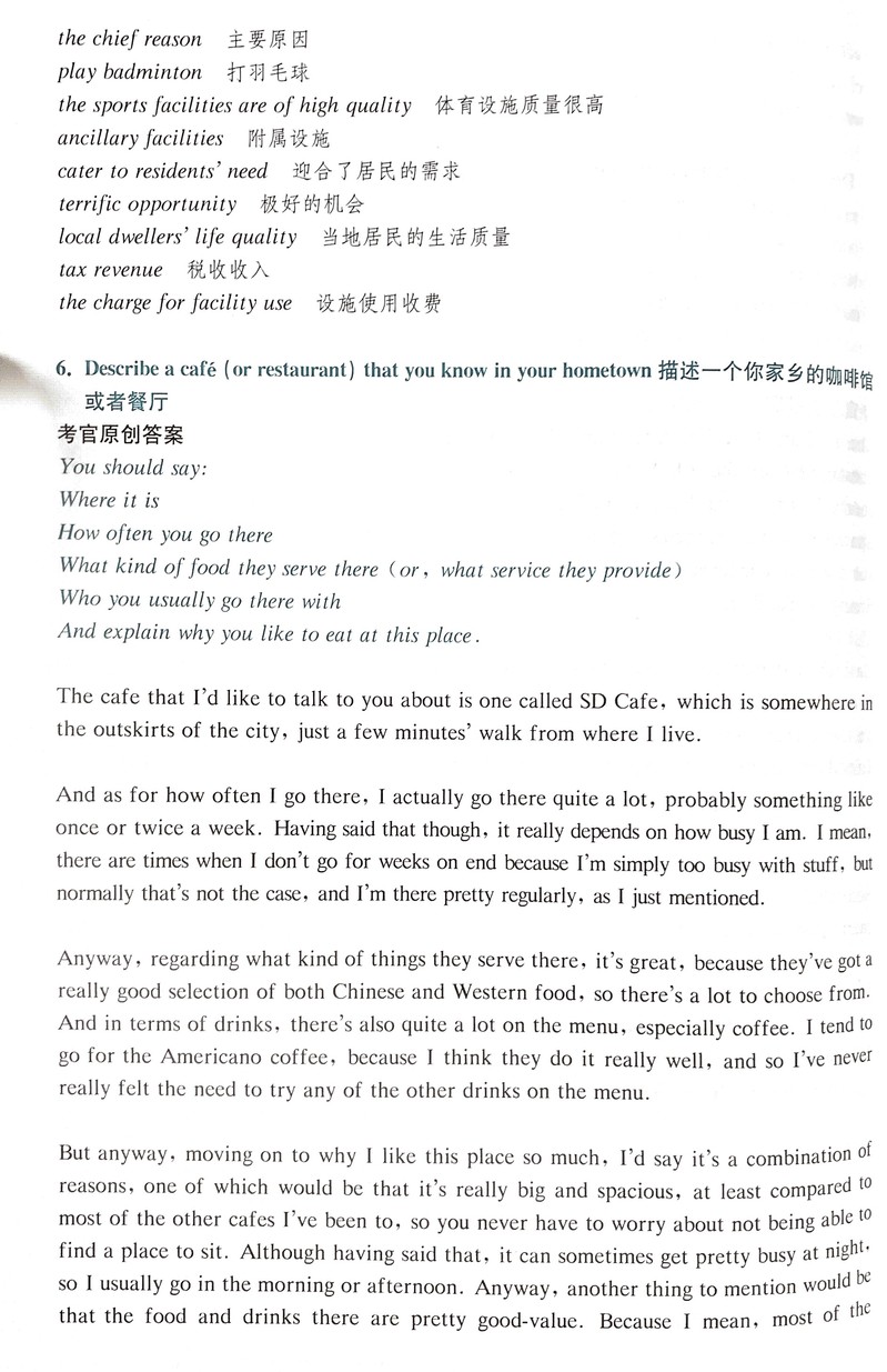 Describe a cafe(or a restaurant) that you know in you hometown描述一个你家乡的咖啡馆或者餐厅。