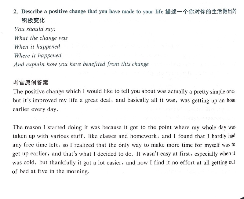 Describe a positive change that you have made to your life 描述一个你对你的生活做出的积极变化。