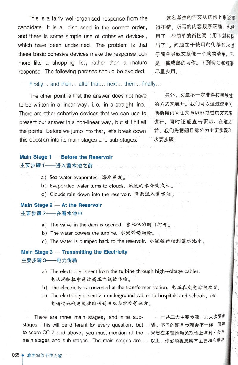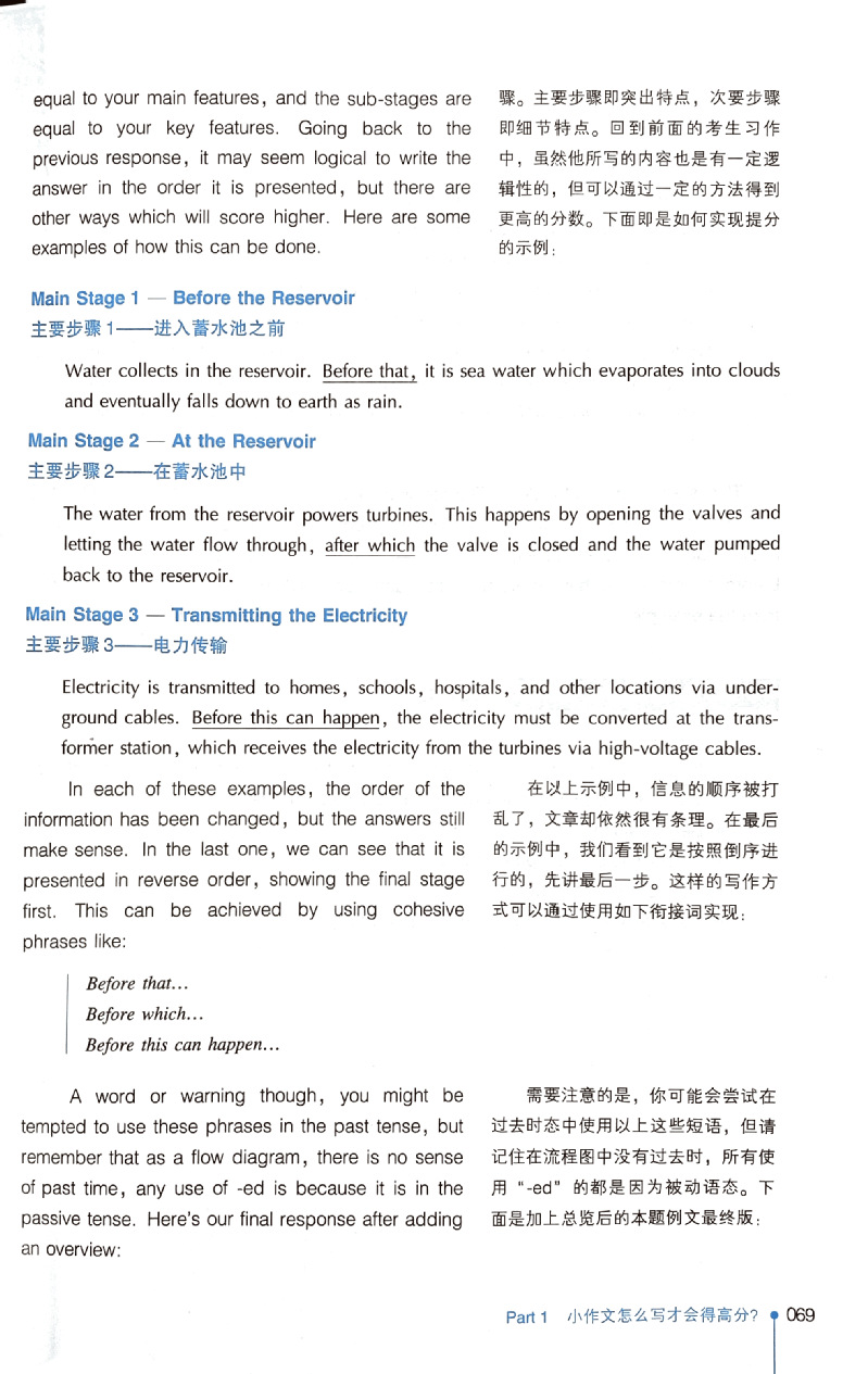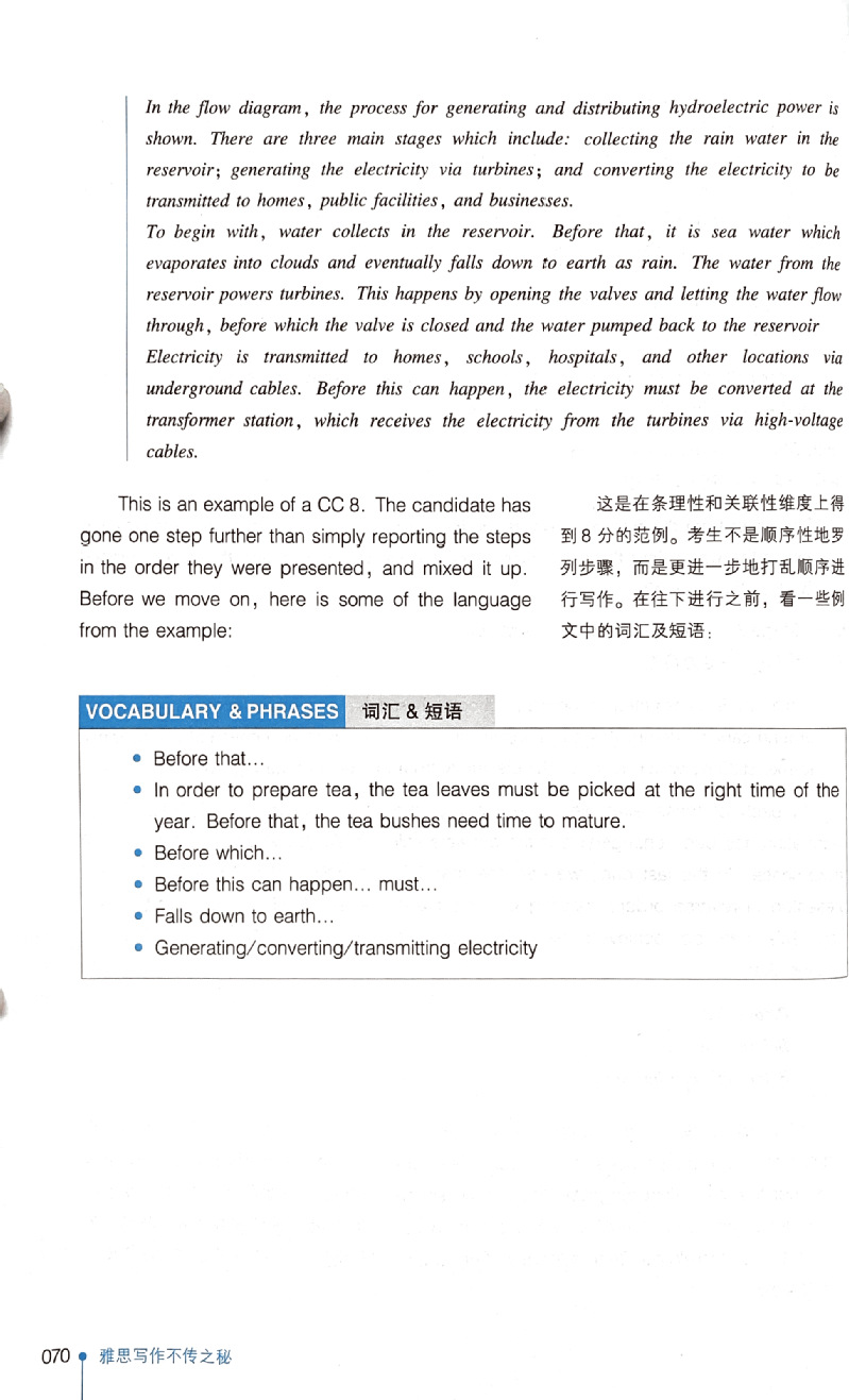 The diagram below shows how electricity is generated at a hydroelectric plant. Summarise the information by selecting and reporting the main features and make comparisons where relevant.