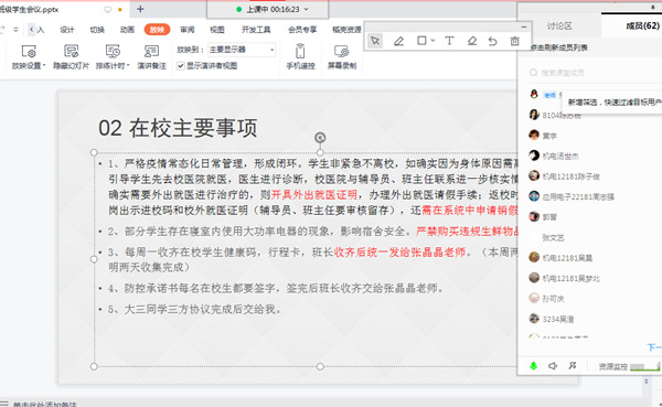 在会议上朱文达老师首先就周边城市疫情风险的严峻情况做出说明,各位班主任要提高政治站位,要有打硬仗的思想意识和准备,不折不扣落实学校的各项防控措施,履行相关责任;其次再次强调了学生的日常管理工作:一是对学院发生两起严重违规违纪情况进行通报;二是严格疫情常态化日常管理,形成闭环;三是严禁学生在寝室内使用大功率电器,以免影响宿舍安全;四是对于存在心理问题的学生,要加强人文关怀和心理疏导;五是定期开展班会。最后,朱文达老师提出,在对毕业生管理的过程中,督促学生完成三方签约的同时要关心了解已经实习学生的动态,防止意外事故发生。