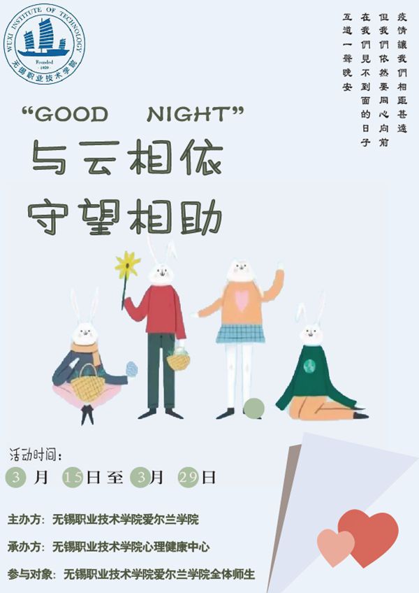 同时,3月15日,爱尔兰学院心理工作站举办了为期两周的“与你相依,守望互助”——晚安睡眠计划活动。