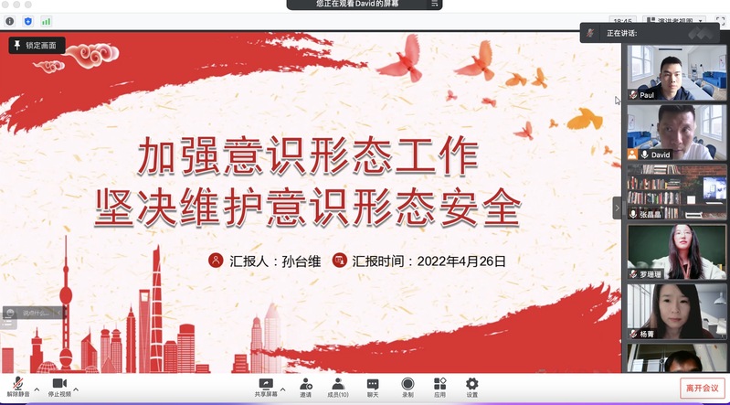 为认真贯彻落实“三会一课”制度,深入开展党员学习教育,4月26日下午,机关七支部以《加强意识形态工作坚决维护意识形态安全》为主题,在线开展了支部学习教育专题党课活动,党课由孙台维同志主讲。