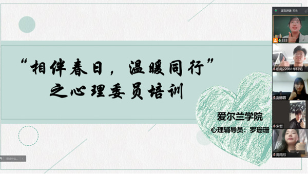 2022年5月6日上午,爱尔兰学院心理辅导员罗珊珊老师组织开展心理健康委员交流会,学院各班级均参加此次会议。