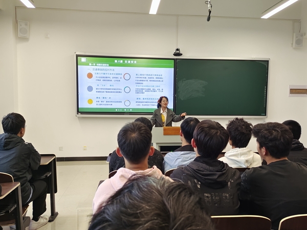 罗珊珊老师以交通安全与心理健康安全等内容为教育重点,根据大学生的实际学习生活情况,以形式多样的互动活动为载体,引导同学们自主学习交通安全的细则,帮助安全意识薄弱的同学提高了判断交通安全隐患的辨识能力。随后,罗老师邀请了两位同学讲述亲身经历的交通事故的感受,两位同学分别讲到了人身安全和交通规则,也对当前大学生校内校外出行,如何保护自己人身安全分别提出了一些建议。最后,罗老师强调了心理健康安全的重要性,介绍了大学生心理健康标准、发展特点、影响大学生心理健康的因素以及抑郁症和焦虑症的一些预防与治疗方法,最重要的是正确认识心理咨询。
