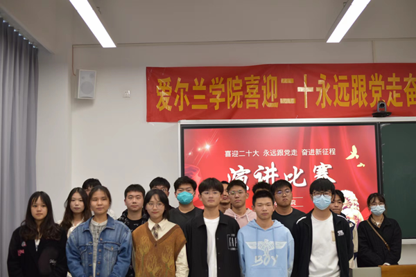 青年有信仰,民族有希望;青年有担当,民族有未来。以奋斗为笔,书写时代新变化。为迎接党的二十大胜利召开,展现青年一代坚守初心、努力奋斗的精神风貌,10月30日,玛雅吧 爱尔兰学院在产教403举行了“永远跟党走、奋进新征程”演讲比赛,全院共16位选手参与本次比赛 。