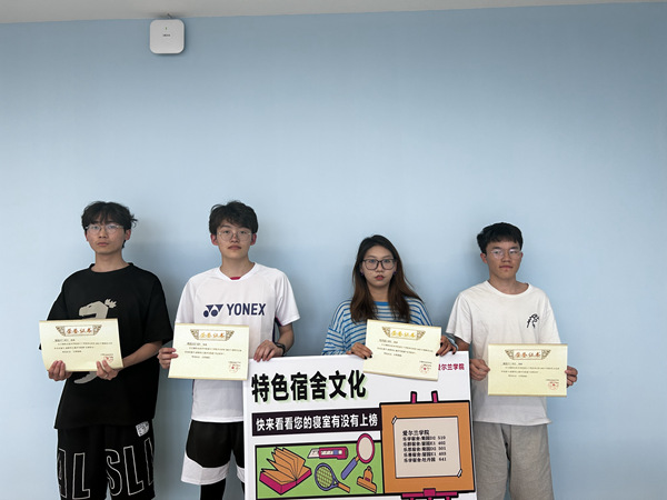 特色宿舍文化活动以提高宿舍凝聚力、营造宿舍良好氛围、构建多样且文明的宿舍为宗旨,学院自11月中旬启动该活动以来,各宿舍踊跃报名参加,特色文化宿舍评比,重在表彰其在宿舍卫生、文化建设、志愿服务、创新创业等方面表现突出的宿舍,具体分为“乐思宿舍”“乐学宿舍”“乐善宿舍”“乐创宿舍”“乐业宿舍”“乐群宿舍”。其中,菊园D2-510获评校级“乐学宿舍”,留园E1-402获评院级“乐群宿舍”,菊园D2-501获评院级“乐思宿舍”,留园E1-403获评院级“乐善宿舍”,牡丹园 641获评院级“乐学宿舍”。