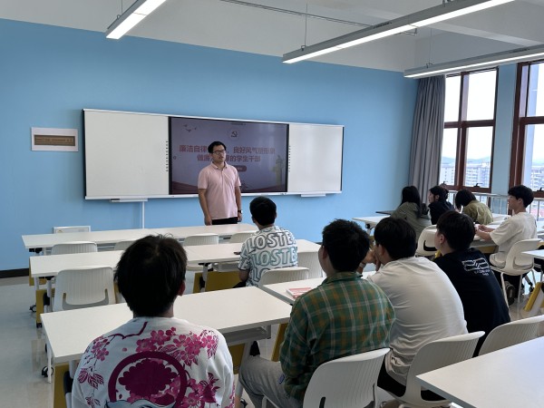 本次主题教育由爱尔兰学院团总支书书记朱文达老师发表讲话,强调了在校学生干部的重要性和责任。他们是学院与学生之间的桥梁和纽带,承担着各项工作的组织和协调。大家统一学习了《新生入学期间学生干部廉洁自律”五条禁令”》,朱老师告诉大家:“学生干部作为优秀的学子代表,应该以身作则,保持良好的操守,对个人行为负责、对学院负责、对社会负责。”