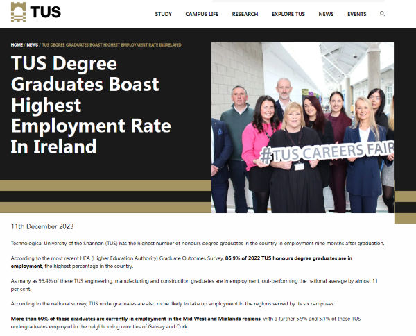 https://tus.ie/news/tus-graduates-highest-employment-rate-in-ireland/