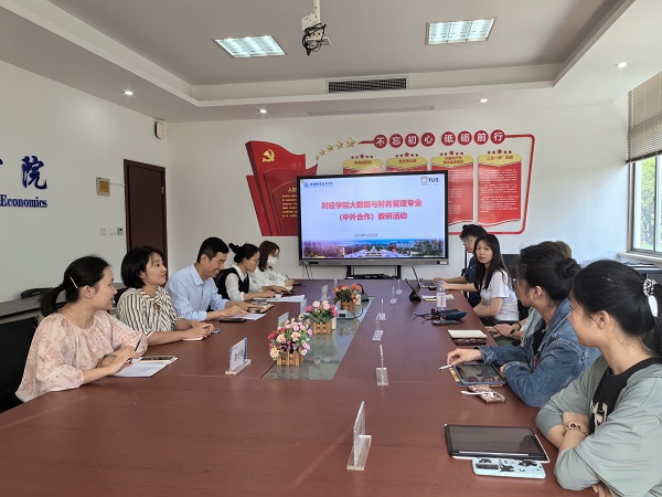 2024年5月22日,财经学院在明德楼A的215会议室召开中外教师联合教研会议。会议由财经学院副院长高凡修主持,爱尔兰香农理工大学商科主任Teresa Ohara博士、爱尔兰学院罗颖老师、财经学院骨干教师和中外合作项目的学生代表参会。