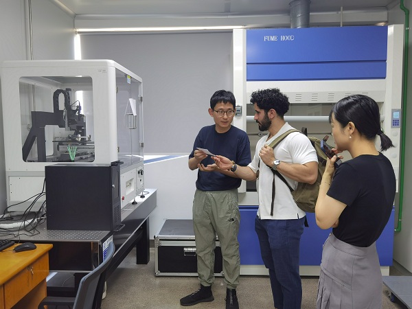 曹澍副院长首先带领外教Evert Duenmayor博士参观了我校智能制造中心难加工材料切屑技术实验室、智能工装与设计实验室、增材制造工艺装备实验室和数控仿真加工实训室,实训室的相关老师引导外教参观了各种先进的机械设备和实验装置,并详细解释了这些设备的用途和操作原理。曹澍副院长还向外教展示了学生们在实训过程中完成的优秀作品和项目案例,让外教深入了解学生们的实践能力和创新精神。Evert Duenmayor博士表现出对实训室的浓厚兴趣,并在现场与曹澍副院长和实验室负责老师们进行了沟通交流。
