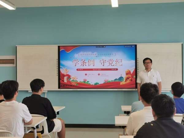 5月29日,学生党支部书记朱文达在崇德楼组织学生预备党员和入党积极分子开展党课并提出:“纪律是规范党员言行的坐标。心有所知,行有所止。要把经常性纪律教育融入日常、融进工作,完整准确全面掌握各项党纪规定,进一步强化党员干部纪律意识,真正把党的纪律规矩刻印在心、落实于行。要把正面引导和警示教育结合起来,充分运用身边人、身边事,强化以身说法、以案明纪,引导广大党员干部真正把纪律严起来、把规矩立起来。”