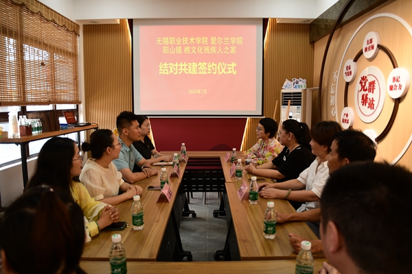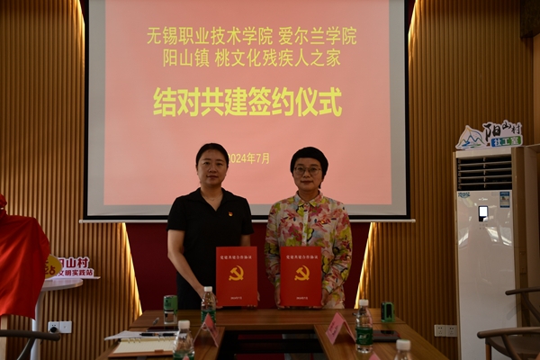 7月6日,爱尔兰学院党总支赴阳山桃文化残疾人之家,开展党建结对共建签约并于此挂牌了国际学生国情教育基地和志愿者服务基地,为今后的扶残助残和共建共享共商共赢奠定了良好的基础。阳山镇残联理事长俞丹萍、阳山村委党总支书记姚剑、残疾人之家负责人曹明玉、残疾人代表和我校爱尔兰学院党总支书记李湘、副院长孙台维、党员教师代表和学生代表参与了此次活动。