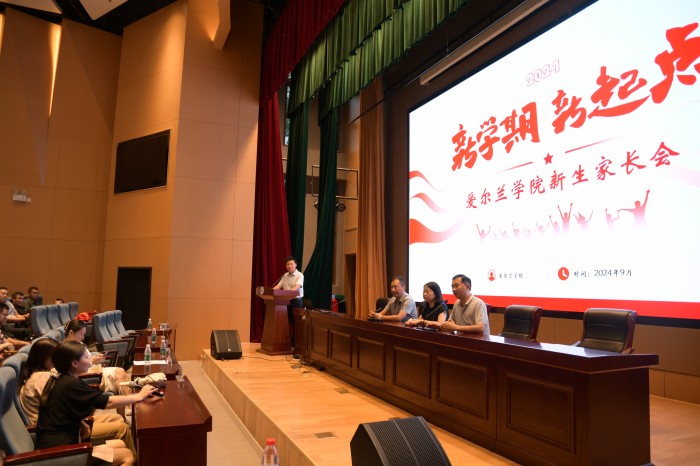 2024年9月8日,爱尔兰学院迎来了一群充满活力和热情的2024级新生们。在这个充满希望和期待的特殊日子里,爱尔兰学院在厚德楼一楼报告厅特别举办了2024级新生家长见面会,以欢迎这些新成员及其家长们的到来。