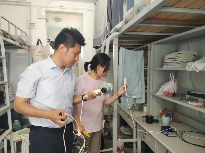 在检查过程中,老师们深入宿舍区域,以严谨细致的工作态度,对潜在的安全隐患进行了全面细致的排查。老师们与学生进行深入交流,全面了解同学们的生活卫生习惯。老师们认真记录下每一个需要改进的地方,确保宿舍区域的安全无虞。同时,老师们谆谆教导同学们必须时刻绷紧用电安全这根弦,避免使用大功率电器,确保电线线路不出现过载现象。此外,老师们还强调了宿舍卫生的重要性,鼓励学生们养成良好的生活习惯,积极维护宿舍卫生,保持环境卫生,以预防疾病的传播,为自己营造一个舒适、整洁的生活环境。
