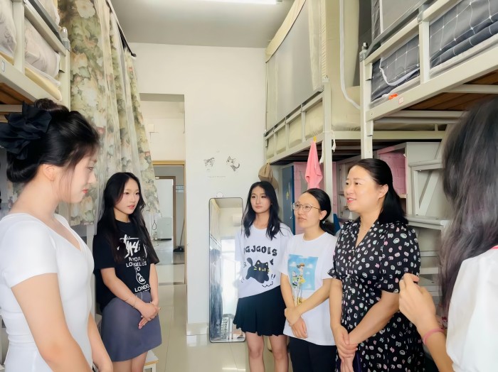 为深入贯彻落实安全管理措施,确保学生公寓成为平安、整洁、舒适、健康的居住环境,适逢中秋佳节来临之际,我院党总支书记李湘同志亲自挂帅,携手副院长孙台维同志以及全体辅导员、班主任,于2024年9月13日至14日,分两批次对全院学生公寓开展了全面细致的走访活动。此次活动旨在一方面对大一新生进行中秋节前慰问,另一方面深入开展安全与卫生的全面检查工作。