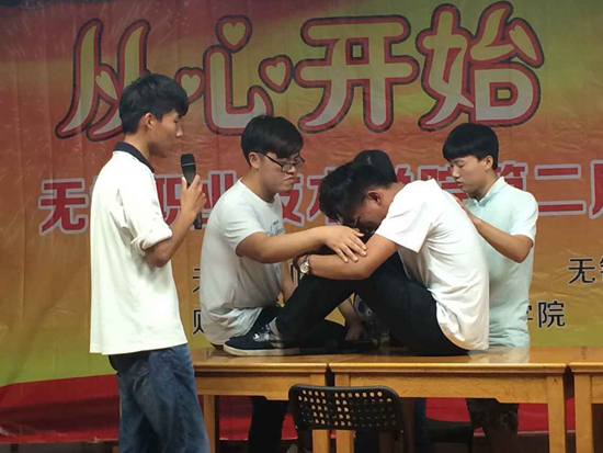 艺术与设计学院此次表演的心理情景剧名为《青春的蜕变》,该剧始于课堂也终于课堂,通过大学生顾小北生变前后巨大的心理变化,讲述了顾小北在老师和舍友的帮助下,逐步从消极悲观的心理状态转变为乐观积极向上的心态。参加演出的有我院学生梅宾、曹恒、夏恒、张文婷、张铭豪、居焘、张鹤骞,他们自己准备剧本,经过一个多月的修改和排练,将这幕剧完整地呈现在舞台上。同学们认真的准备,投入的表演,将大学生心理转变的过程栩栩如生地表达了出来,赢得了台下评委和观众的阵阵掌声,最终以90.25的全场最高分荣获比赛第一名。同时,梅宾同学感情真挚,表演到位,还获得了优秀个人奖。(李湘)