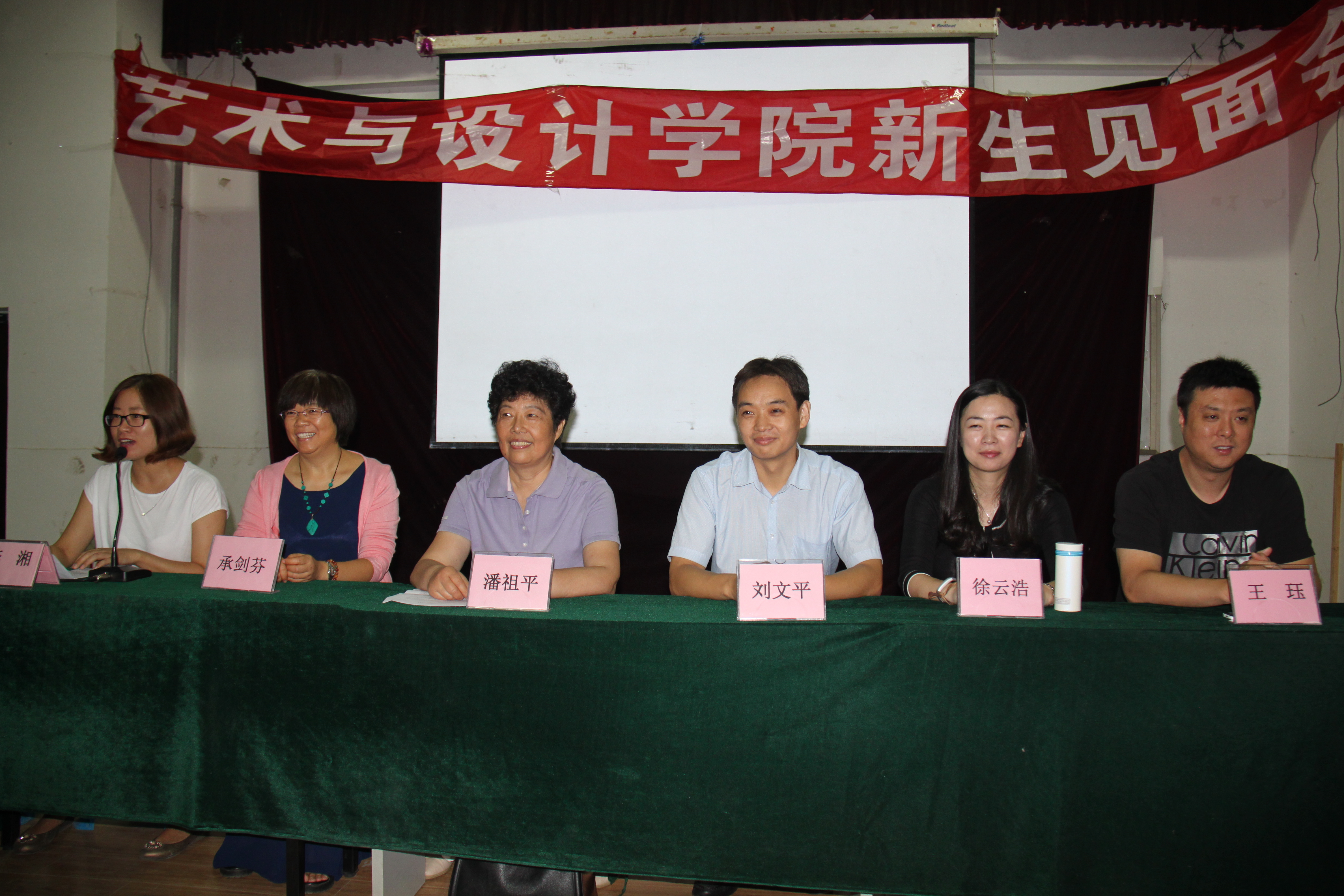 2015年9月16日上午9点,艺术与设计学院在中桥校区阶梯教室隆重举行2015级新生见面会。参加见面会的有艺术与设计学院院长潘祖平教授、艺术与设计学院副院长承剑芬教授、艺术与设计学院党总支刘文平书记、学生工作办公室主任李湘老师、视觉传达设计系主任张晶老师、数字媒体设计系主任李雁南老师、环境艺术设计系主任王珏老师、工业设计系主任徐云浩老师等。