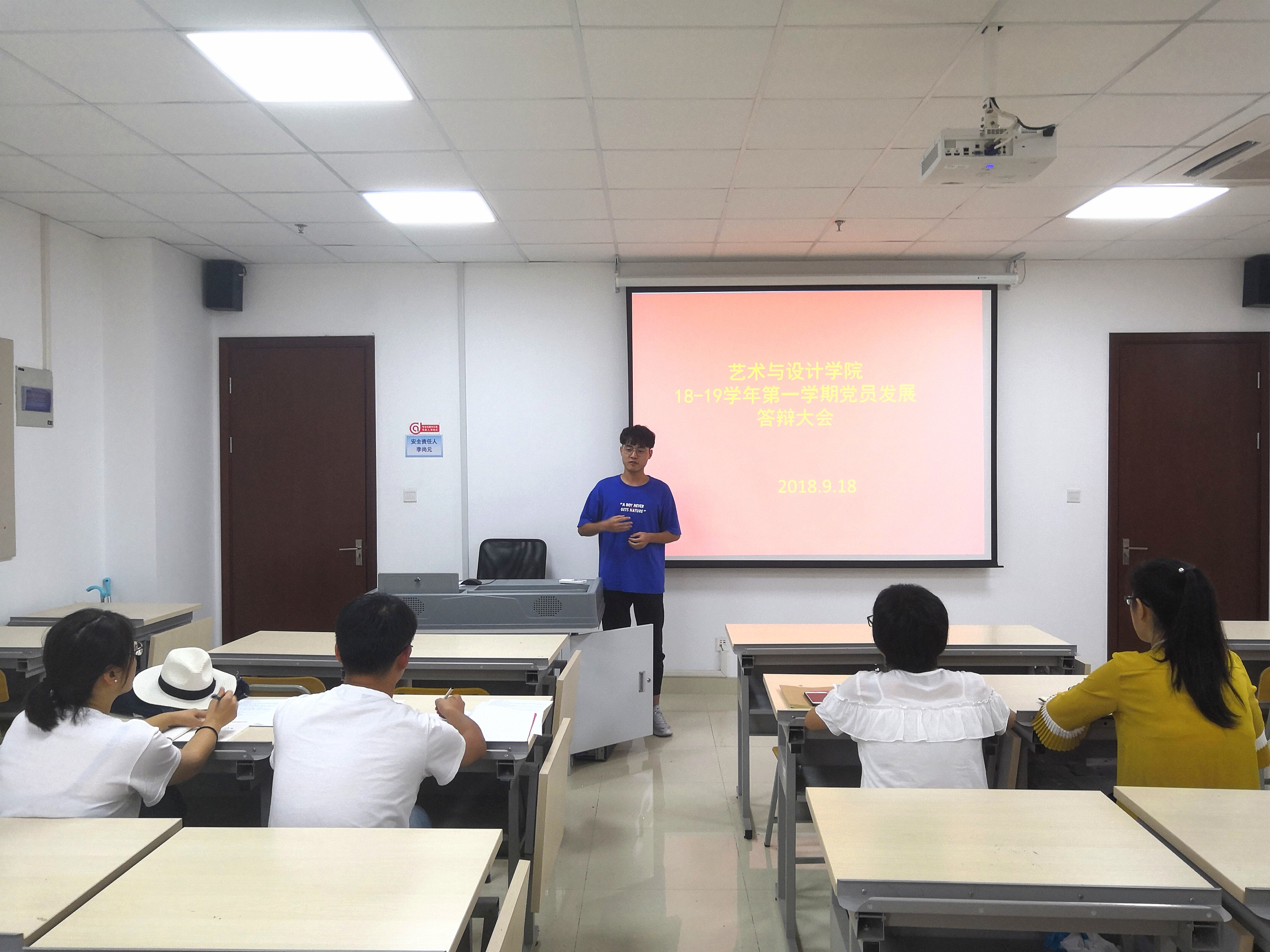 为进一步增强大学生党员发展工作的科学性和公信度,提高大学生党员发展质量,提升学生党员的思想政治素养,艺术与设计学院党总支于9月18日下午在综合楼303举行18-19学年第一学期(9月)党员发展答辩会。担任答辩会评议小组的评委是由艺术与设计学院学生党支部书记蒋红中老师及支部各教师组成。