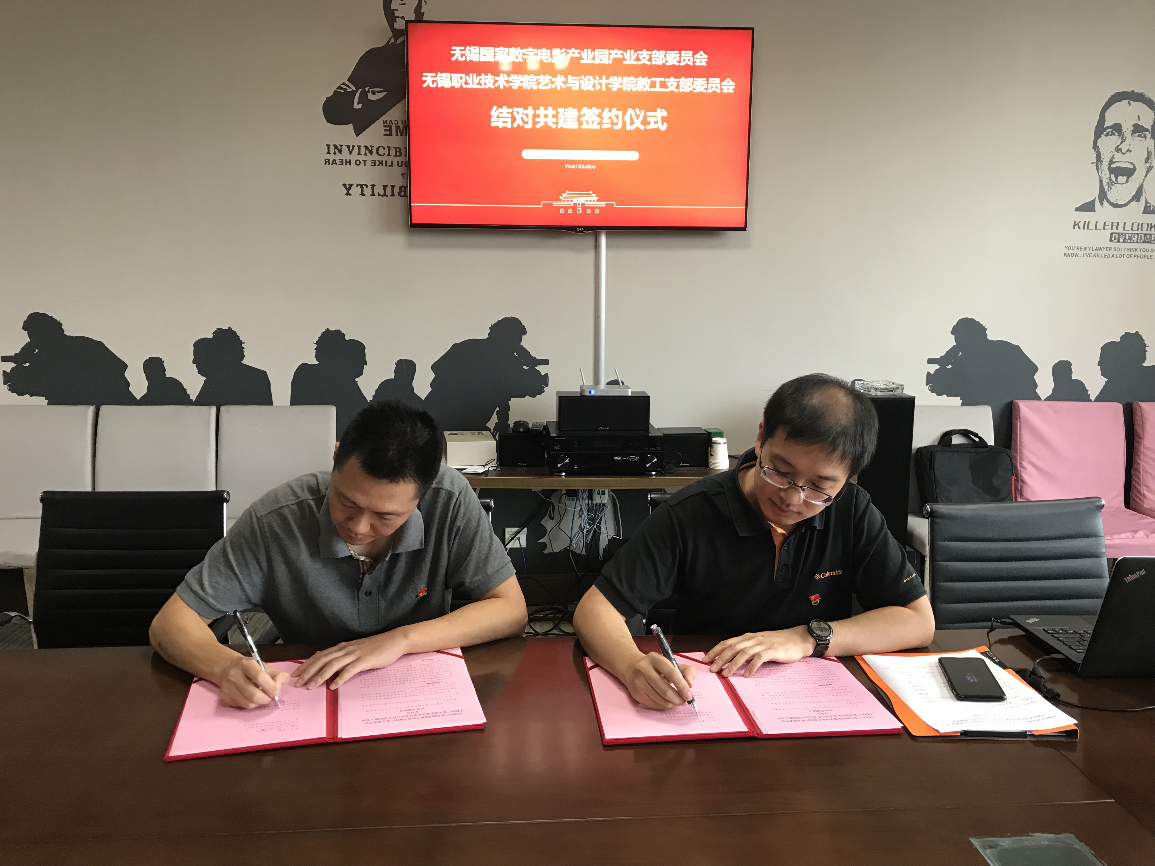 首先,两个支部书记介绍了各自党支部概况,双方党员互相交流,一起实地参观了无锡国家数字电影产业园党员活动现场,为后续结对共建活动深入开展奠定了良好的基础,最后,双方党支部书记签署共建协议。两个支部将利用本单位党建资源,定期共同开展党建活动,相互交流党员教育管理工作经验,提高党建工作整体水平,双方相邀定期召开座谈会、讲党课、组织生活会等党员活动。