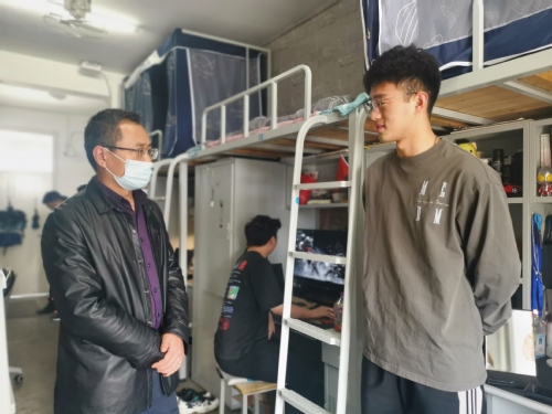 在走访过程中,苗书记和同学们亲切交流,了解同学们所关心的急难愁盼之事并给予详细解答,并叮嘱同学们要科学认识疫情,主动学习防疫知识,遵守学校各项疫情防控规章制度,注意保持良好的宿舍卫生环境,牢固树立宿舍安全意识,认真做好在校期间各项防护工作,积极调整状态合理安排校园学习生活。