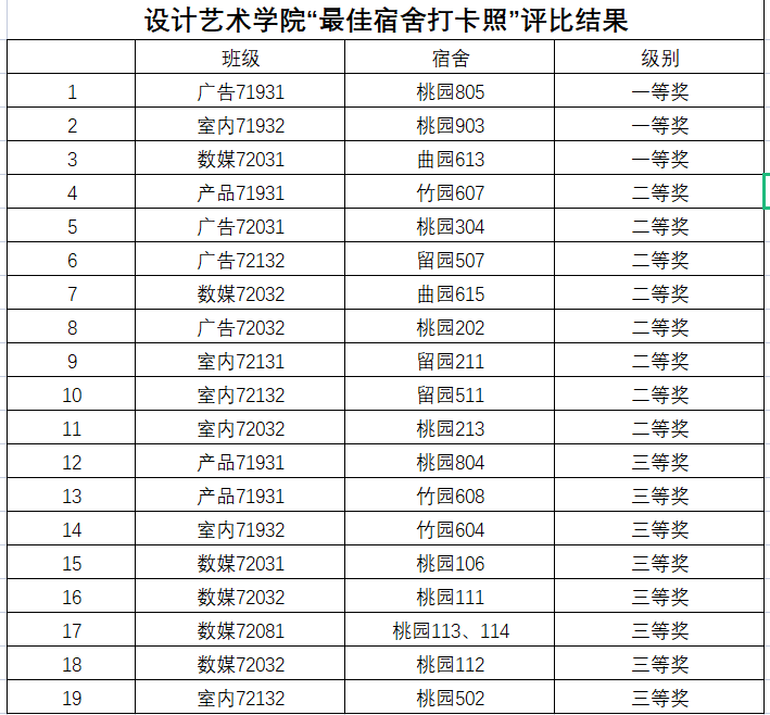 本次宿舍文化节包含了优秀宿舍评比、特色文化宿舍评比、寻找最美书桌和最佳宿舍打卡照共四个系列活动,经宿舍自荐、班主任推荐、学院实地走访评比,最终评选出四个项目的近40个获奖宿舍团体及个人。