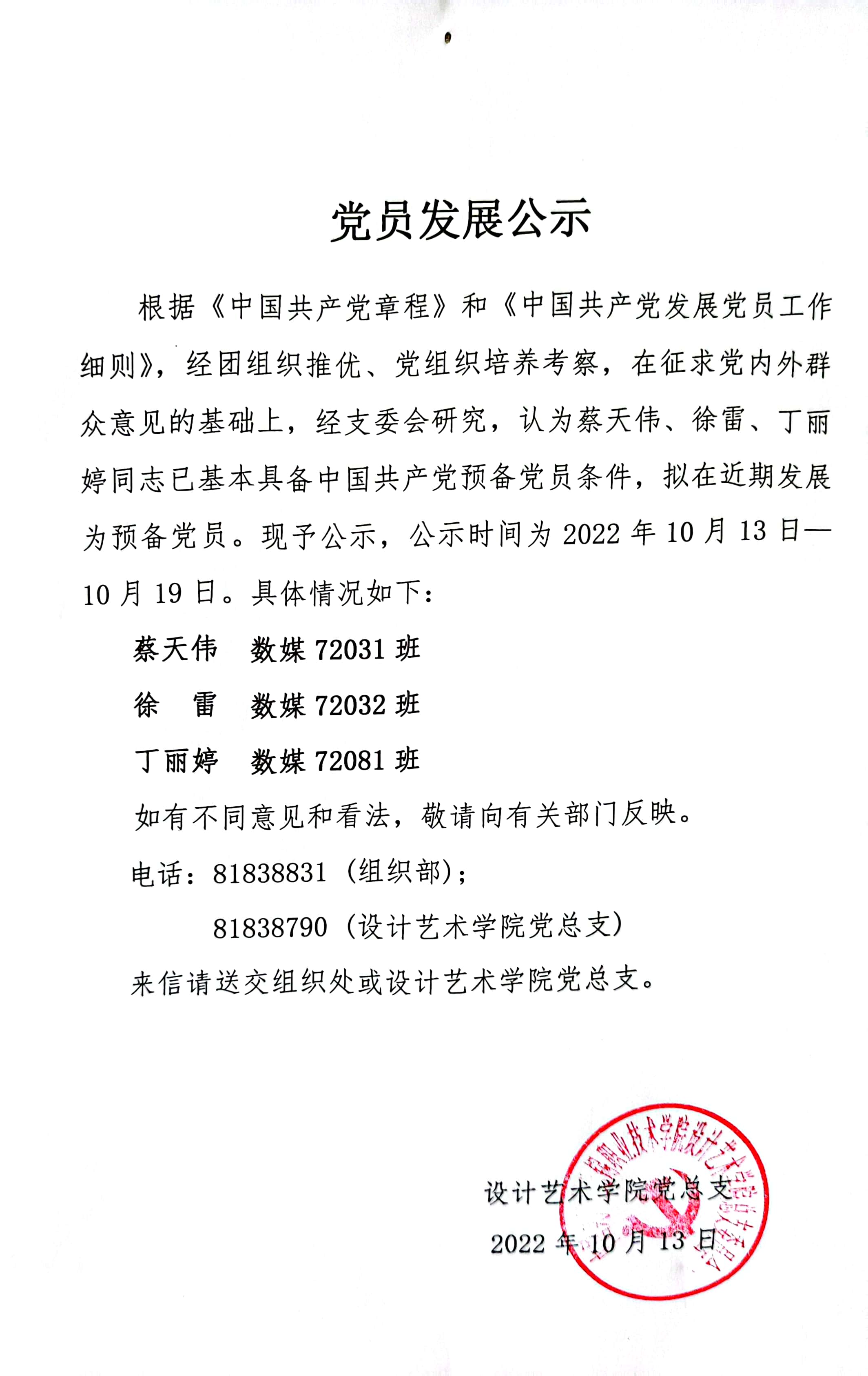 学生党支部2022年10月党员发展公示