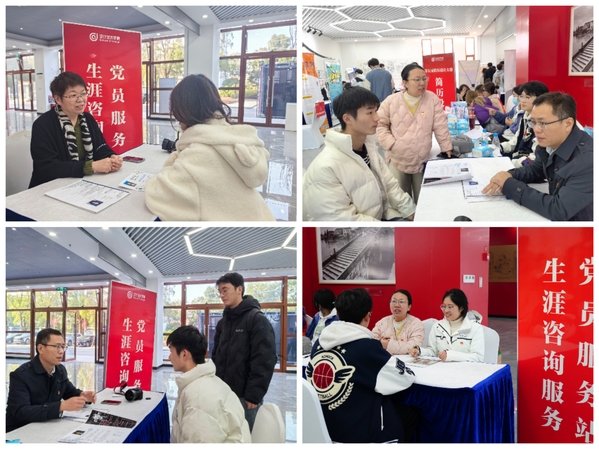 本次招聘会得到了设计学院党总支书记苗勇、关工委承剑芬教授、各系部专业课教师、辅导员和班主任的助力,他们与企业充分交流,了解就业形势和用人需求。在党员服务站前,教师党员与同学们亲切交谈,以生涯规划指导助力毕业生高质量就业。
