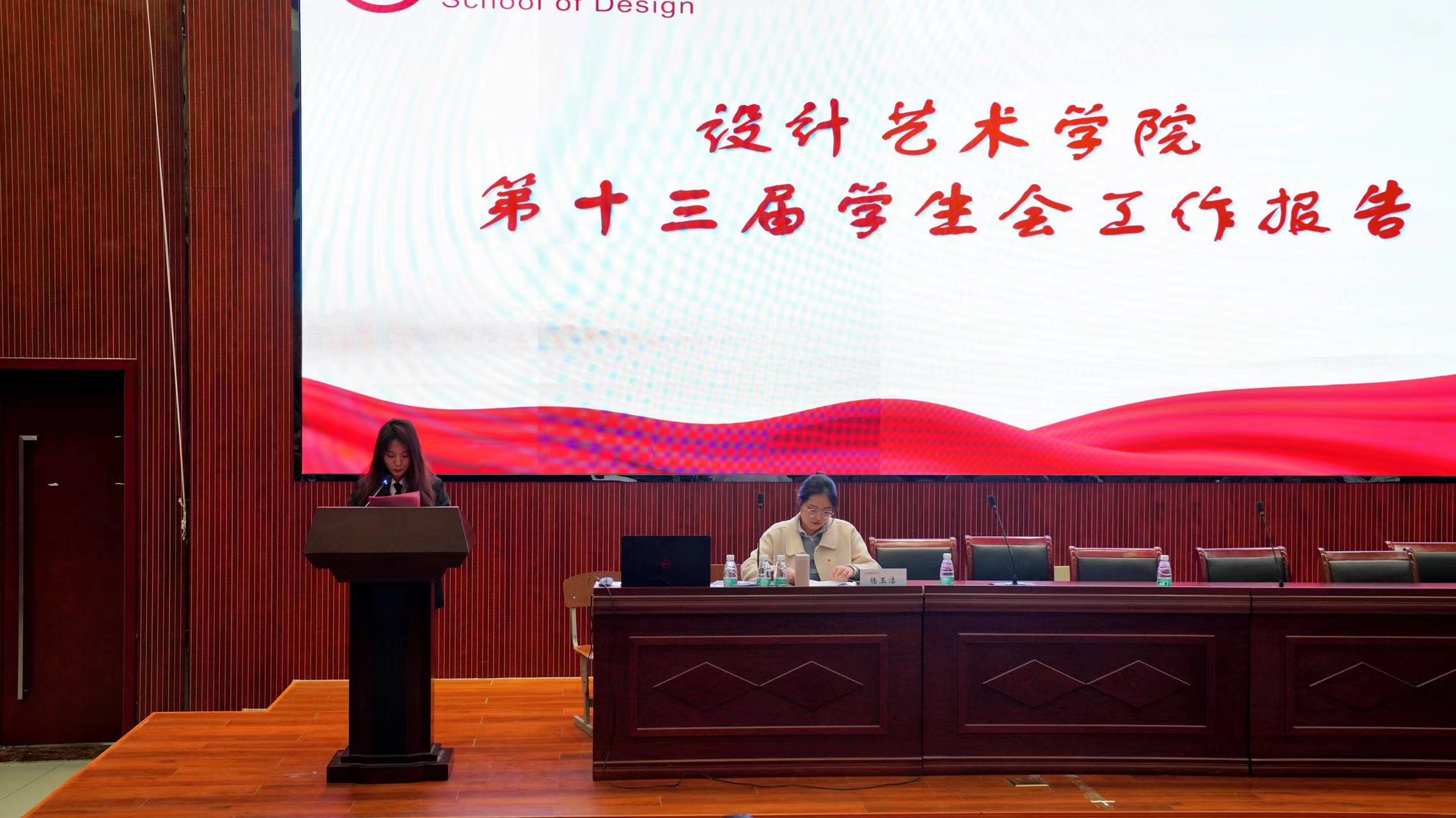 第十三届学生会主席南豫茜同学代表学生会向大会作《设计艺术学院第十三届学生会工作报告》,程庆林同学代表团总支向大会作《设计艺术学院第十三届团总支工作报告》,他们分别对过去一年的工作进行回顾,并提出了下阶段工作的总体思路和主要任务。