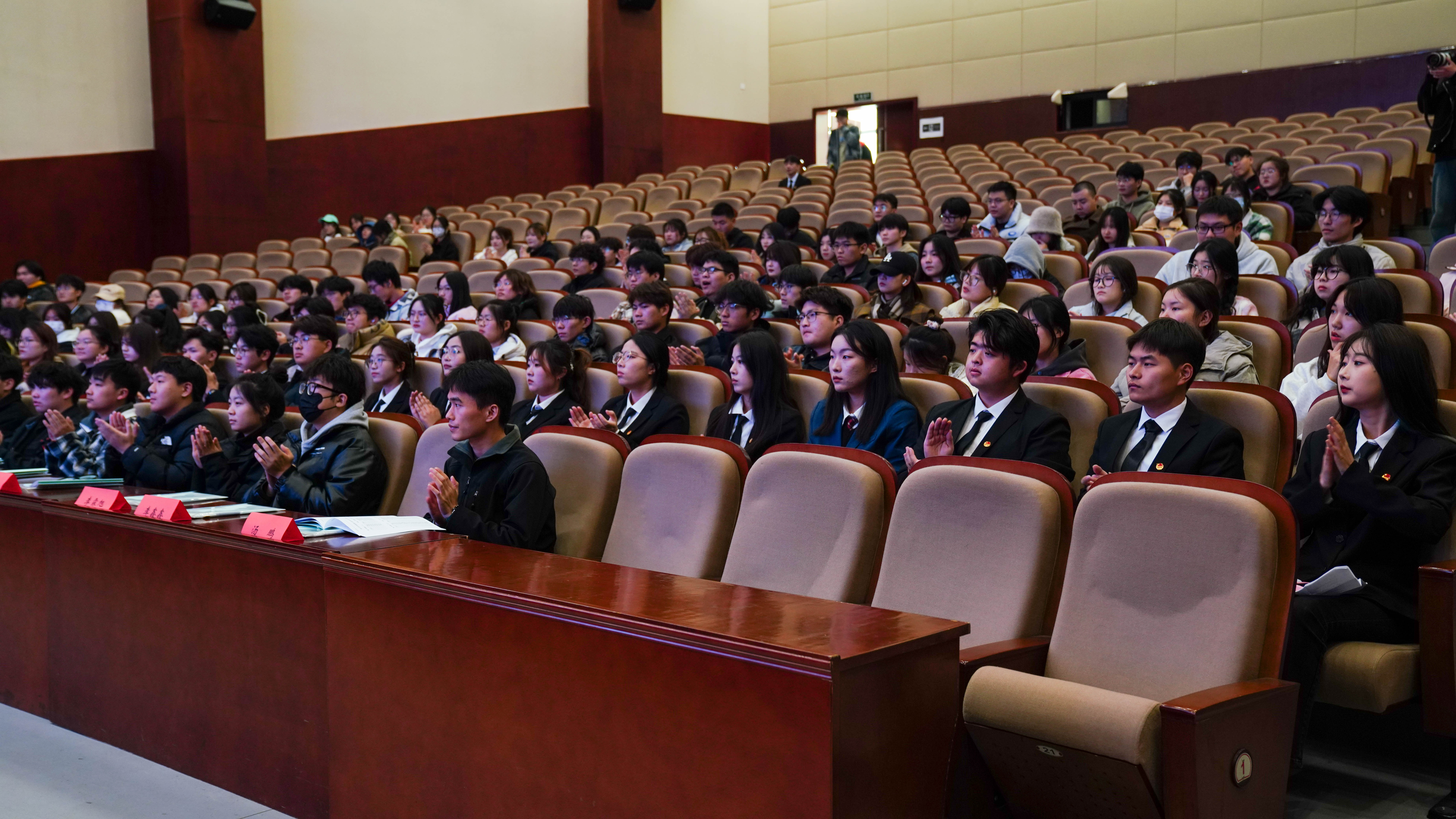 大会在庄严的国歌中拉开帷幕,学院学生党支部书记陆玉洁致开幕词。校团委副书记郑月圆向大会发表精彩致辞,肯定了学院团学干部一年来在思想政治引领、创新创业、社会实践、校园文化建设等方面取得的成绩,并希望学院各级团学组织和团学干部,要坚持守正创新,着力提升团学组织的功能发挥,充分激发广大青年在中国式现代化建设中挺膺担当的热情。