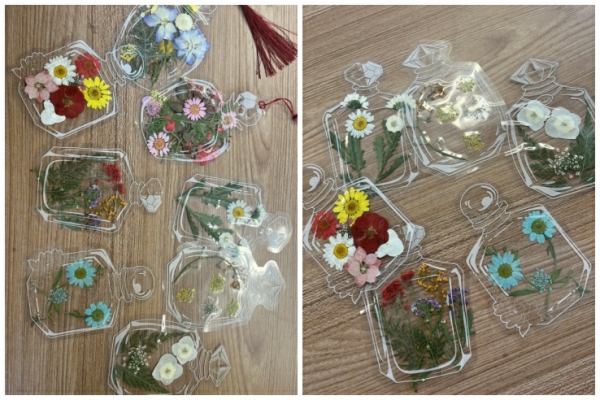 最后,同学们充分发挥想象力,用干花制成自己喜欢的书签。这些书签犹如一件件精美的艺术品,每一枚都独具特色展现了同学们对美学的独特理解
