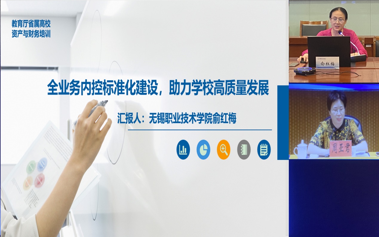 江苏省教育厅于8月23日至24日召开2022年省属高校财务与资产管理培训视频会议,会议由省教育厅财务与资产管理处处长周亚君主持,省财政厅国库处副处长、支付局局长龚云峰,财政监督局副局长赵娜出席并讲话。我校财务处处长俞红梅在会上作交流发言。