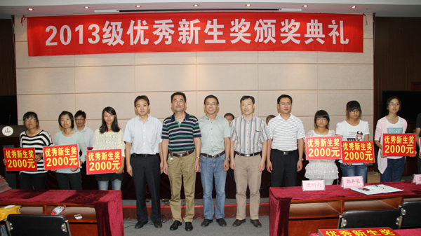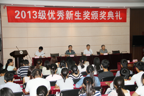 9月24日下午,我校在国际交流中心二楼报告厅举行2013级优秀新生颁奖典礼。颁奖典礼由招生办主任张建忠主持,龚方红校长、华坚副校长及各院系总支书记、辅导员出席颁奖典礼。