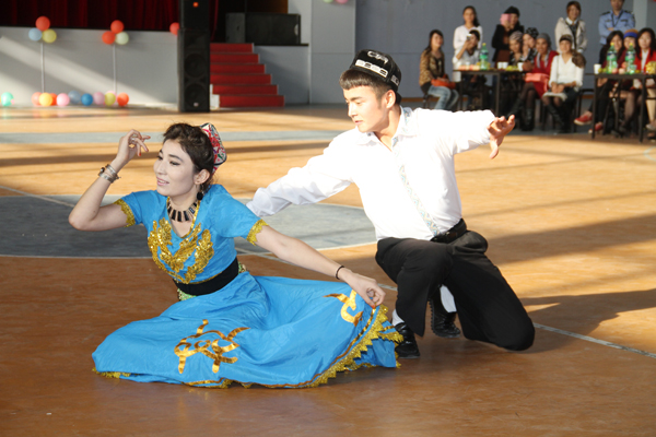 华坚副校长向新疆同学致以节日的祝愿和亲切的问候。新疆学生用精彩纷呈的歌舞展示出他们独特的异域风情和传统文化,欢快的节奏掀起了全场的阵阵高潮,活动现场洋溢着欢快的气氛。(石淑丹 房涵)