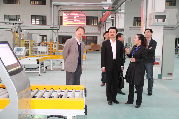 28下午,市经信委吴建平副主任一行6人来校实地检查智能工厂项目,校长龚方红、项目组负责人戴勇教授等陪同检查。检查组一行实地踏看了智能工厂二楼中央主控制室和一楼车间现场,并听取了项目组成员吴慧媛所作的项目整体进展情况汇报。吴建平副主任对我校项目的进展程度表示满意,并希望我校努力把此项目做成感知工业的示范引领项目,也为感知工业领域培养出高水平高技能的人才。