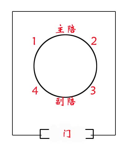 宴请客人,一般主陪在面对房门的位置,副主陪在主陪的对面,1号客人在主陪的右手,2号客人在主陪的左手,3号客人在副主陪的右手,4号客人在副主陪的左手,其他可以随意。