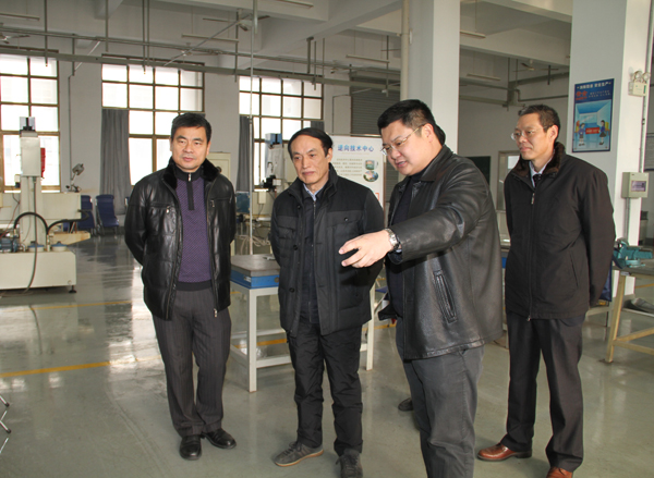 蒋吉生书记(左二)参观我校机械学院实训场所