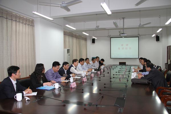 葛道凯司长(中)在机械技术中心与我校教师交流