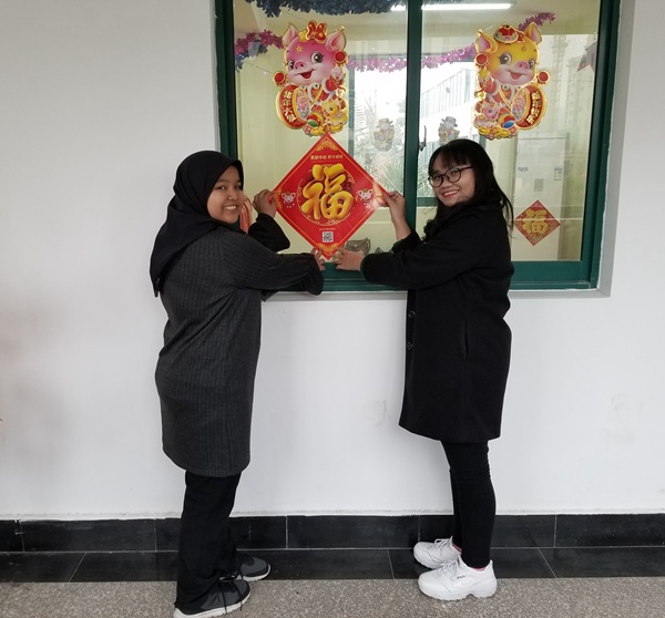 据悉,今年寒假有来自省内外的120多名学生由于实习、竞赛、专业实践、兼职锻炼等原因,未能与家人共度春节。100多名外国留学生主要来自南非、马来西亚、阿尔及利亚等12个国家。寒假伊始,学校就组织多方力量为留校学生提供各类生活保障。为确保本次活动顺利进行,学生处、团委、后勤处、国教院等部门相关人员加班加点,为留校学生布置场地、营造氛围、准备茶点和餐饮。