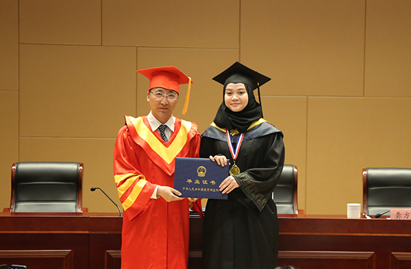 龚方红校长为留学生颁发毕业证书