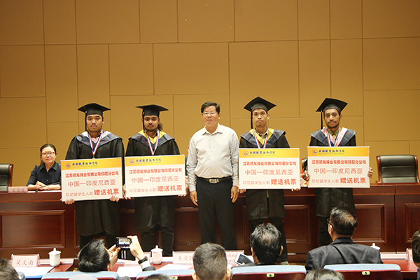 马来西亚管理与科学大学副校长Eddy Yusuf先生、印尼特里萨克迪集团主席Julius Yudha Halim先生、印尼特里萨克迪运输与物流学院副校长Juliater Simarmata先生、系主任Francis Tantri先生,江苏德龙镍业有限公司、中兴教育管理有限公司等企业负责人,我校领导朱爱胜、龚方红、吴慧媛及相关职能部门、二级学院负责人、教师代表、家长代表、毕业生等170多人参加了毕业典礼。